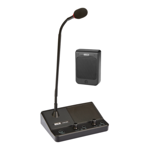 - Compact & elegant table top attendant unit with 20” long gooseneck microphone for strain-free usage.